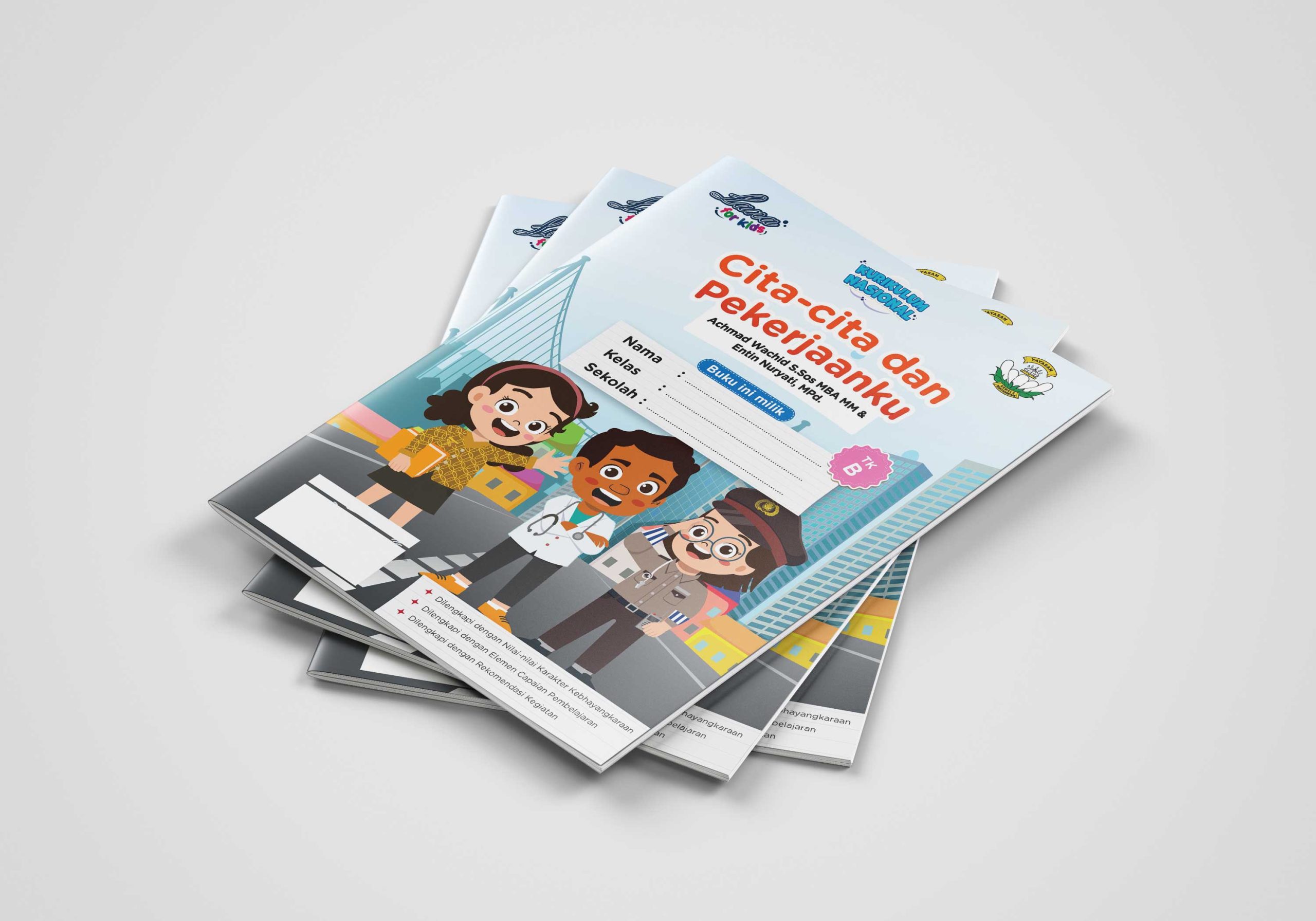 Buku seri Cita-cita dan Pekerjaanku ini dirancang dengan standar Kurikulum Nasional, yang dapat mengasah keterampilan berpikir serta kreativitas anak. Buku ini berisi berbagai kegiatan bermain sambil belajar yang dilengkapi dengan nilai agama dan budi pekerti, jati diri, dasar-dasar literasi, matematika, sains, teknologi, rekayasa, dan seni. Kami mengucapkan banyak terima kasih kepada berbagai pihak yang telah berkontribusi sehingga buku ini berhasil diterbitkan. Kami berharap semoga buku ini dapat memberikan sumbangan terbaik bagi pembentukan karakter anak didik dan kemajuan bangsa dalam rangka mempersiapkan generasi masa depan Indonesia.